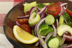 ゴロゴロに切った香りのいい生野菜を、レモンと塩だけで。オイル・フリーです。