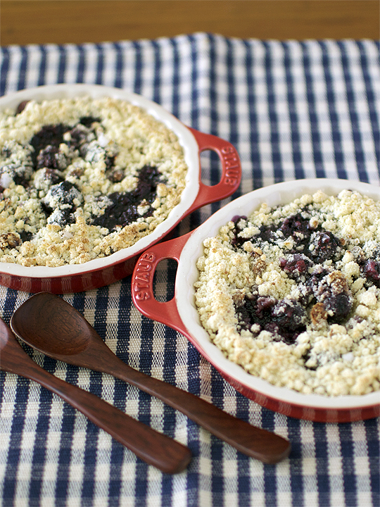 甘いジャムとフルーツの味わいを、ケーキクラムの中のカンホアの塩【結晶のまま】の塩気がぴりりとひきしめてくれます。ブルーベリーのない時期は、いちごといちごジャム、ラズベリーとラズベリージャム、りんごとりんごジャム等いろいろな完熟フルーツでどうぞ。