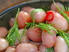 ※ 豆とディルを一緒に食べるとおいしい。 ※ 缶詰や市販のゆで豆でも。 ※ 金時豆、虎豆、いんげん豆等でもおいしい。