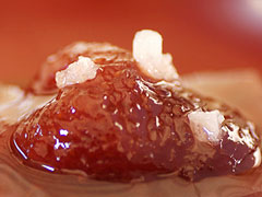 いちごと小豆の相性は抜群。水羊羹のような甘さを、カンホアの塩【結晶のまま】の塩気がひきしめます。