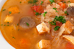 大根とキノコで作る、動物性を使わないオリジナルのボルシチ。寒い日にどうぞ。