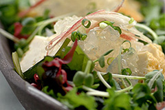 一手間かけて、ドレッシングをジェル状にします。生野菜によくからみ、冷たさも加わります。