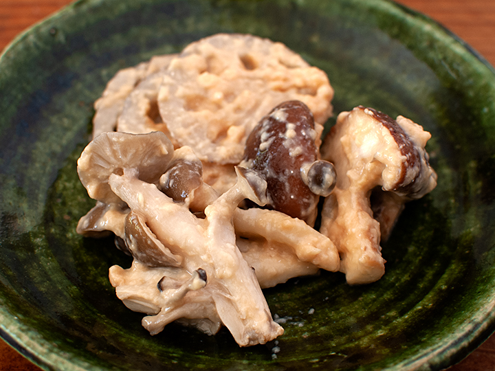 きのこやレンコンのように食感やうまみ、甘みがあるものは、酒粕に漬けるとよりいっそうおいしくなります。ご飯や熱燗と一緒にどうぞ。