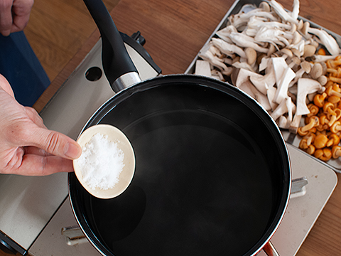 ロシアで食べたサワークリームのきのこサラダを、豆乳ヨーグルトでアレンジしました。ねっとりとした味わいの、なめこが特においしいので、必ず入れてください。また、塩を多めに入れたお湯できのこをゆで、きのこに塩味をつけるのもポイントです。